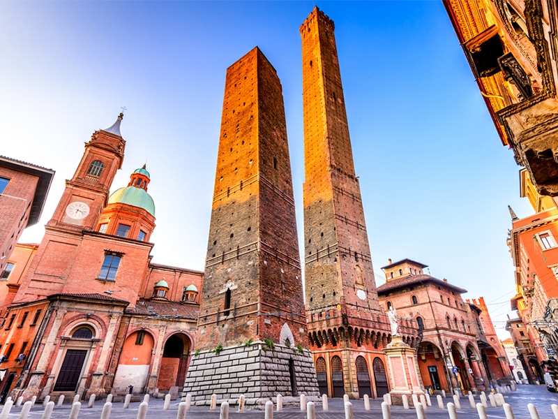 Una delle peculiarità di Bologna sono i suoi portici: la città possiede quasi 40 km di portici, i più lunghi del mondo. Bologna è anche chiamata come la “Dotta”, per via della sua antica Università, e la “Grassa”, soprannome dovuto alla sua gastronomia. Nella lista di cosa visitare a Bologna immancabile è Piazza Maggiore, conosciuta anche come Piazza Grande. Questo luogo è il centro civile e religioso del capoluogo e si caratterizza per la presenza di numerose architetture storiche. Sulla Fontana di Nettuno si affacciano i più importanti palazzi: il trecentesco Palazzo Comunale, il cinquecentesco Palazzo dei Bianchi e la Basilica di San Petronio, di fronte alla quale si trova il Palazzo del Podestà. La Torre degli Asinelli è un altro dei luoghi da visitare durante una gita a Bologna. Dopo aver percorso 498 gradini della scalinata interna, potrai raggiungere la cima della torre fino ai suoi 97,20 metri di altezza, da cui godere di una splendida vista.