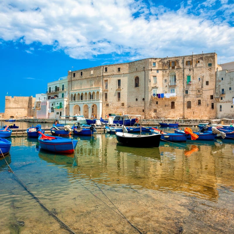 Conosciuta anche come “città delle cento contrade”, Monopoli conserva il suo fascino medievale per via del centro storico fortificato e per la presenza nelle contrade di masserie fortificate. Il paese vecchio si sviluppa attorno al Borgo, nome dato alla centrale Piazza Vittorio Emanuele, una delle più grandi d’Italia. Una delle prime cose da vedere a Monopoli è sicuramente il cinquecentesco Castello di Carlo V, situato sul Promontorio Punta Penna e risalente al periodo della dominazione spagnola. Un altro edificio che merita di essere visto è il Palazzo Martinelli, edificato sulle mura di cinta e affacciato sul Mar Adriatico.