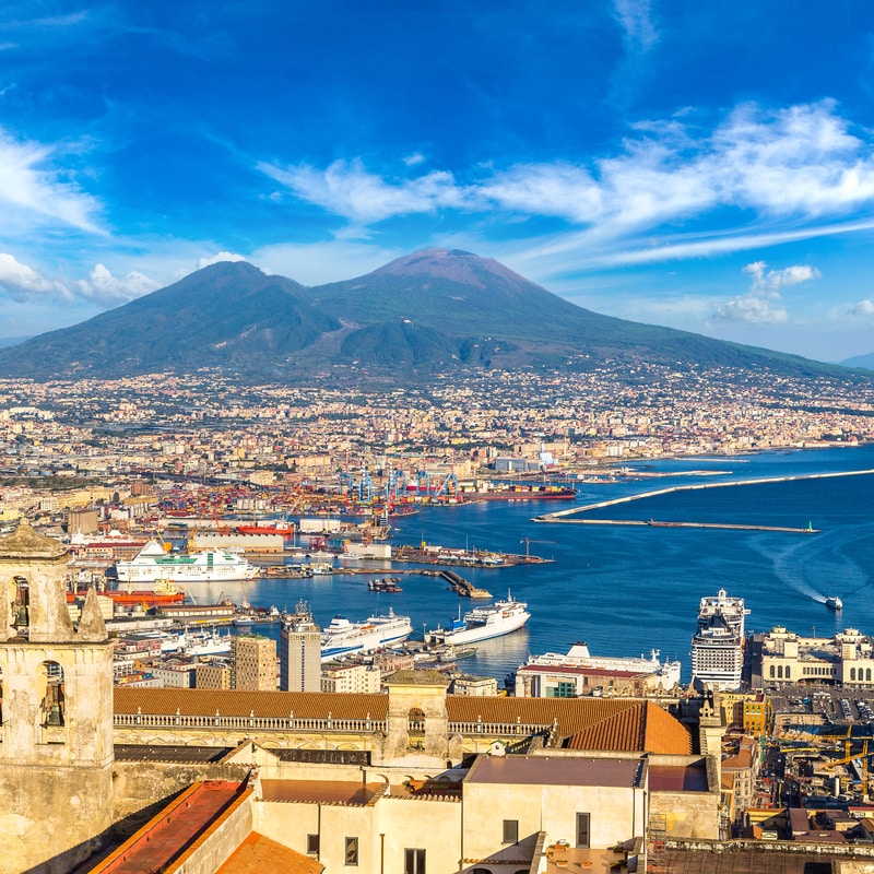 Napoli è una delle città più suggestive d'Italia. Affacciata su un golfo, che si estende dalla penisola sorrentina fino all’area vulcanica dei Campi Flegrei, Napoli è dominata dal Vesuvio e vanta un meraviglioso centro storico, inserito nel 1995 nel World Heritage List dall’UNESCO. Visitare Napoli significa immergersi nei suoi brulicanti quartieri e splendidi monumenti, come i quartieri spagnoli, il Duomo e il Palazzo Reale, solo per citarne alcuni. Durante una visita a Napoli sicuramente non può mancare un giro a Spaccanapoli, la strada che collega i quartieri spagnoli con il quartiere di Forcella. Piazza del Plebiscito è un altro simbolo della città: in questa piazza anticamente si tenevano i tornei medievali, mentre oggi è un centro particolarmente frequentato dai giovani. Nella lista di cosa vedere a Napoli non può mancare Castel Nuovo, conosciuto come Maschio Angioino, uno storico castello la cui costruzione iniziò sotto il regno di Carlo I d’Angiò.